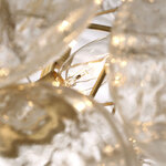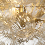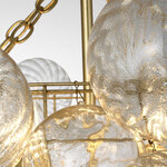 The Talia Gold Fleck Chandelier will elevate your interior space with its whimsical beauty. Varying sizes of swirled artisanal, gold fleck glass orbs rest on a metal basket and cast warm shadows across your room.