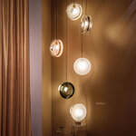 The Orbital Pendant evokes the look of a celestial body with a hypnotically glowing cores. The ingenious design of a hand-blown glass lens, held in place by a metal band creates a fascinating visual experience. One half of the shade is clear, while the other half is colored to provide an exciting pop of color. The glass is mouth-blown thus the intensity of color and gradient may slightly vary. TRIAC dimmable.