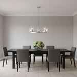 The Fullton Glass Chandelier bring a modern, industrial vibe to your interior space. The sublime frame holds clear glass jars surrounding visible bulbs that cast warm shadows across your room. Sloped ceiling to 22 degrees maximum.