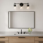 The Anders Bathroom Vanity Light brings a clean, industrial vibe to your interior space. The sleek frame and clear glass shades add a layer of retro design to the warm look, while casting warm shadows across your room. May be mounted with the glass facing up or down.
