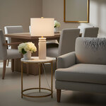 The Feikudo Table Lamp is inspired by the serene landscapes of California. The stunning ceramic body features intricately carved details and is topped by a round shade. On/Off switch is located on the lamp socket.