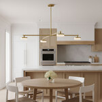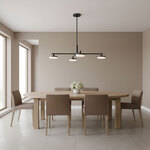 The Khan Chandelier brings both form and function to your interior space. The smooth frame holds silk screen glass - White on the inside and Clear on the outside, that takes this minimalist piece to a whole new level of lighting.