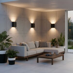 The Kakudo Outdoor Dark Sky Wall Light brings an architectural simplicity to your interior space. The flared frame casts warm shadows across your area.