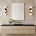 The Altair Wall Sconce is jewelry for your home. The smooth lineal frame holds strategically placed globes of glass, resembling beautiful pearls and casting warm shadows across your room. May be mounted horizontally or vertically.