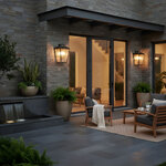 The Kennewick Outdoor Wall Light brings a clean, updated traditional look to your exterior space. The contemporary lantern frame is complemented by seeded glass panels that cast warm shadows across your area.
