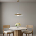 The Astra Pendant brings a minimalist beauty to your interior space. The slim stem holds a glass globe, with a white lined, cone shaped steel shade that rests on the globe. The result is warm light all around your room. Sloped ceiling to 22 degrees maximum.