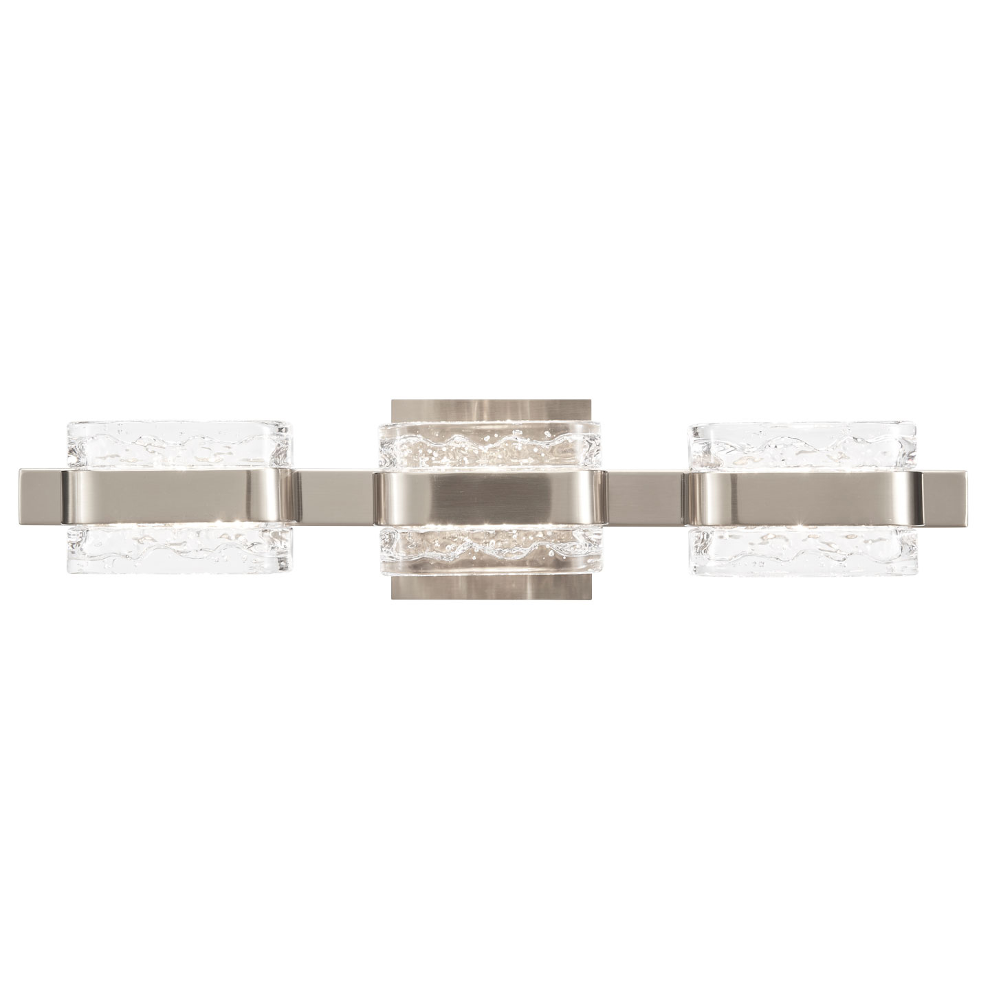 The Jojo Bathroom Vanity Light is a modern spin on a classic aesthetic. This vanity features a solid glass diffuser with a water-like appearance. The hollow glass bubbles and splashes enabling the light to dance playfully through it, like waves crashing on the shore. Perfect for any contemporary restroom upgrade or even a revamp on a classical ornate style washroom, this vanity is a perfect fit for almost any setting. Can be mounted horizontally or vertically.