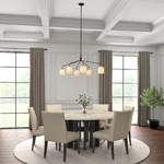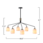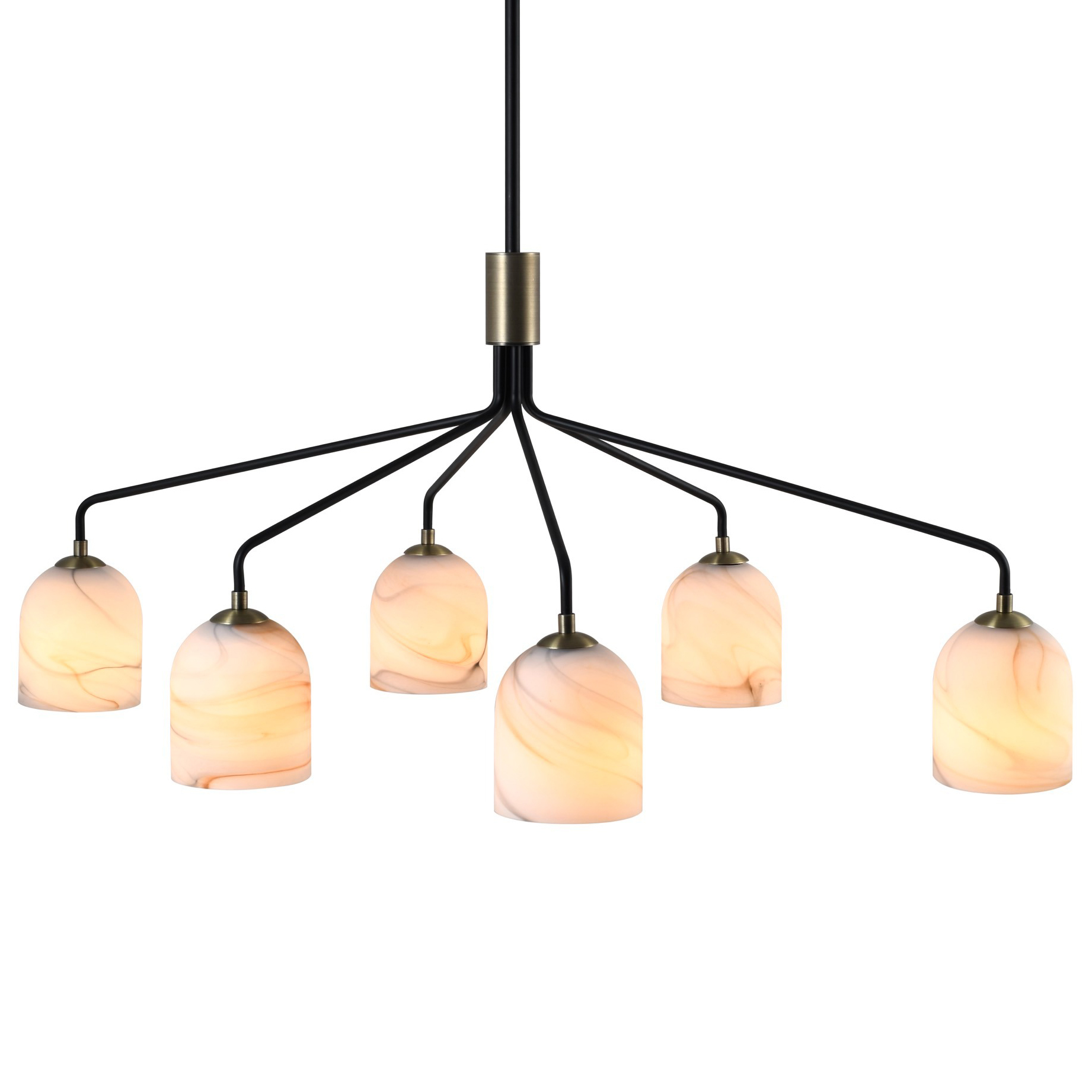 The Crema Chandelier by Steven Sabados of S&C radiates understated sophistication with its alabaster-style swirl glass, casting a warm, inviting glow. Its sleek black frame is beautifully complemented by brushed brass accents, creating a perfect harmony of modern sophistication and classic charm. Rods included for easy height adjustment to suit different height requirements.
