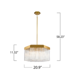 The Emma Chandelier by designer Kevin Kraemer is a captivating blend of elegance and geometry. Individual glass rods, delicately suspended from a brushed brass hexagonal frame, shimmer with timeless sophistication, creating a mesmerizing interplay of light. Complemented by a matching hexagonal canopy, this design brings an air of modern luxury to any space.