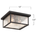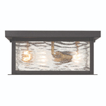 The Estate Outdoor Ceiling Light radiates classic allure, with its black metal frame offering a striking contrast to the mesmerizing water glass panels. Encased within, vintage brass candle covers and intricate metalwork glow warmly, evoking a sense of nostalgic charm. Perfect for enhancing any outdoor space, this sconce blends classic sophistication with modern durability.