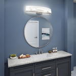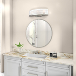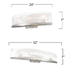 The Skye Bathroom Vanity Light exudes timeless elegance, blending a brushed nickel frame with the ethereal beauty of wispy white Murano-style glass panels. Its silhouette radiates sophistication, creating a soft, ambient glow perfect for intimate spaces. The craftsmanship of the Skye collection by designer Kevin Kraemer is evident in the graceful harmony between its materials and design. This piece serves as both a functional light source and a work of art, elevating any room with its luxurious charm.