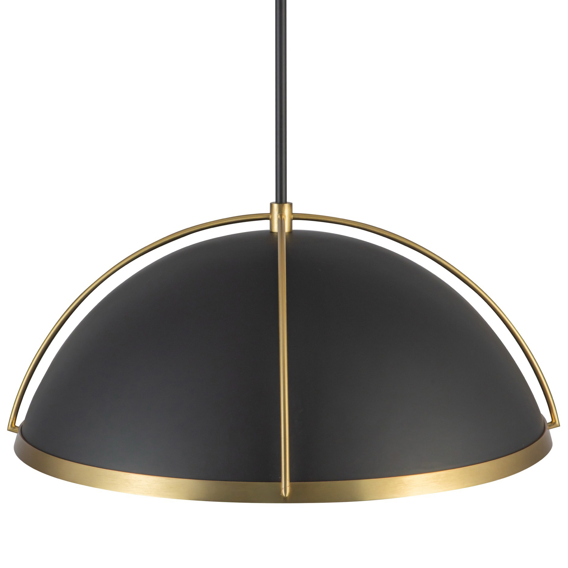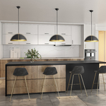 The Dahlia Dome Pendant by designer Kevin Kraemer features a sleek semi-matte black frame highlighted by brushed brass accents, exuding modern sophistication. Its versatile design allows it to be styled as either a pendant or semi-flush mount fixture. With multi-length rods, it offers the flexibility to hang at the perfect height for any space. A stunning addition to elevate the ambiance of any room.