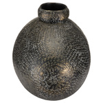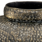The Brigadier Vase is packed eye catching vintage character. Mixing gold, bronze and white, the surface is awash with color and texture, achieved with hand-hammered detailing. The submarine shape makes this a narrow decorative accessory that will fit perfectly on slim surfaces.