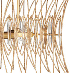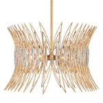 Inspired by mid-century era jewelry, the Marquise Oval Chandelier is made of slender wrought iron wires woven in a stunning repeated motif. A a Luxor gold finish adds a speckled texture, enhanced by oblong clear glass that seems to sparkle when illuminated.