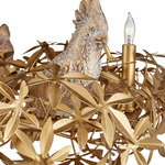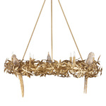 The Aviary Chandelier is a shining exemplar of sophisticated biophilic design. Drawing inspiration from birds in springtime, and array of cockatiels, sparrows, and macaws perch in a busy ring of fresh leaves. Each bird is carefully recreated out of composite to match the original carved chandelier. A Swedish gold finish creates the finishing, classic touch.