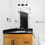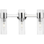 The Arden Bathroom Vanity Light brings a touch of industrial elegance to your interior space. Its sleek metal frame supports beautifully elongated hand blown glass that diffuse light into soft, inviting shadows throughout your room. May be mounted up or down.