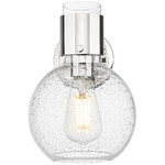 The Lawton Sphere Wall Sconce brings an updated look to a timeless Newton style. The sleek frame has a collar that holds refined spherical shaped glass that casts warm shadows of light across your room. May be mounted with the glass up or down.