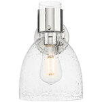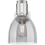 The Lawton Bell Wall Sconce brings an updated look to a timeless Newton style. The sleek frame has a collar that holds refined bell shaped glass that casts warm shadows of light across your room. May be mounted with the glass up or down.