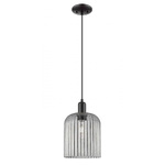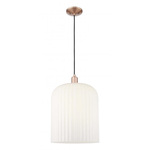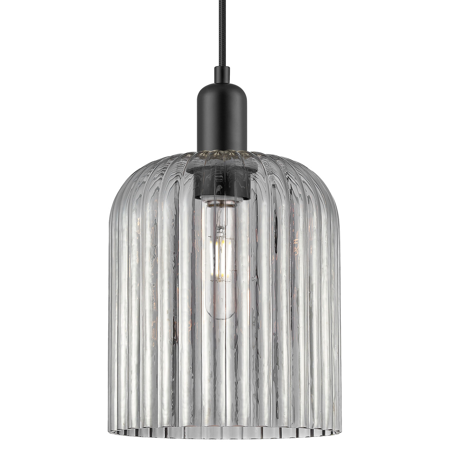 The Bridal Veil Pendant adds a touch of decorative elegance to your interior space. Its sleek base supports a bell shade of hand-blown, ribbed glass that diffuses light beautifully, casting warm, inviting shadows throughout your room.