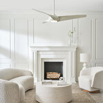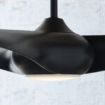 A novel take on a popular style, the Topan Smart Ceiling Fan by Sean Lavin showcases three gracefully twisted wrapped blades creating a pinwheel-liked dynamic that draws the eyes to the center. The classic metal construction and white lens LED gives a soft ambient illumination. This fan can be controlled with an included 6-speed handheld remote control. A dimmable LED light kit is included and covered with frosted white diffuser.