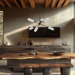 The Balbina Chandelier showcases a stunning sputnik design that adds a touch of sophistication to any space. With its metal construction and fluted glass shades, it creates a statement piece perfect for your dining or kitchen area. This transitional light is LED compatible and dimmable, offering adaptable ambiance for any occasion.