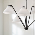 The Werley Chandelier brings a casual charm to your interior space. The climbing angular arms are capped with triangular glass shades that cast warm ambient light across your room. Sloped ceiling to 22 degrees max.