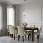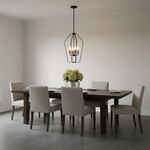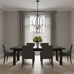 The Kennan Chandelier brings an updated look to the traditional lantern style. The classic candelabra center is surrounded by an open cage, casting warm light across your room. Sloped ceiling adaptable to 45 degrees max.