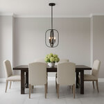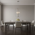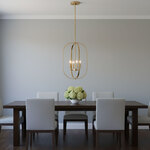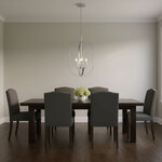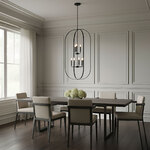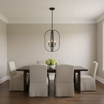 The Loretto Chandelier brings a bold simplicity to your interior space. The central candelabra is surrounded by a curved open cage that casts warm, inviting shadows throughout your room. Sloped ceiling to 22 degrees max.