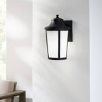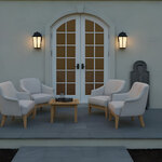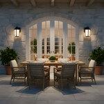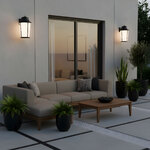 The Portola Outdoor Wall Light elevates the classic lantern silhouette with refined detailing and modern versatility. A graceful straight arm supports a sleek frame paired with etched white glass shades, softly diffusing light to create a warm, serene glow across your exterior space.