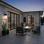 The Portola Hanging Wall Sconce elevates the classic lantern silhouette with refined detailing and modern versatility. A graceful gooseneck arm supports a sleek frame paired with etched white glass shades, softly diffusing light to create a warm, serene glow across your exterior space.