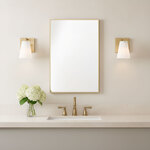 The Upson Wall Sconce adds a touch of decorative elegance to your interior space. Its sleek backplate and angled arm are paired with a clear, textured fluted shade featuring a white interior, casting a soft, layered glow throughout the room. May be mounted with the glass up or down.