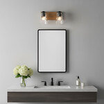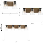The Dunton Bathroom Vanity Light adds a warm, rustic charm to your interior space. The hand-painted faux wood backplate and straight arms, support conical water glass shades that diffuses light beautifully, casting inviting, textured shadows throughout your room.