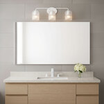 The Eisele Bathroom Vanity Light adds a touch of refined simplicity to your interior space. Its gracefully curved arms support ribbed glass domes that gently diffuses light, creating a warm, inviting glow and subtle shadow play throughout your room.