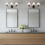 The Mendota Bathroom Vanity Light introduces clean, understated elegance to your interior space. Curved arms are finished with conical glass shades that diffuse a warm, ambient glow throughout your room.