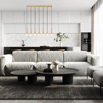 Sleek and precise, the Stari Linear Multi-Light Chandelier is a minimalist design that provides a layered glow for any space. The metal cylinders feature vertical groves for added texture, highlighting the simple bulbs. Perfect for a kitchen or dining room.