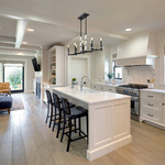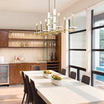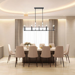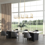 The Kaden Linear Chandelier features a classic candle design, fitted with striking alabaster stone accents. Its linear form makes a refined statement for a kitchen or dining room, providing soft light with a touch of modern artistry.