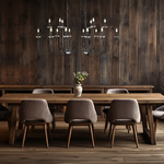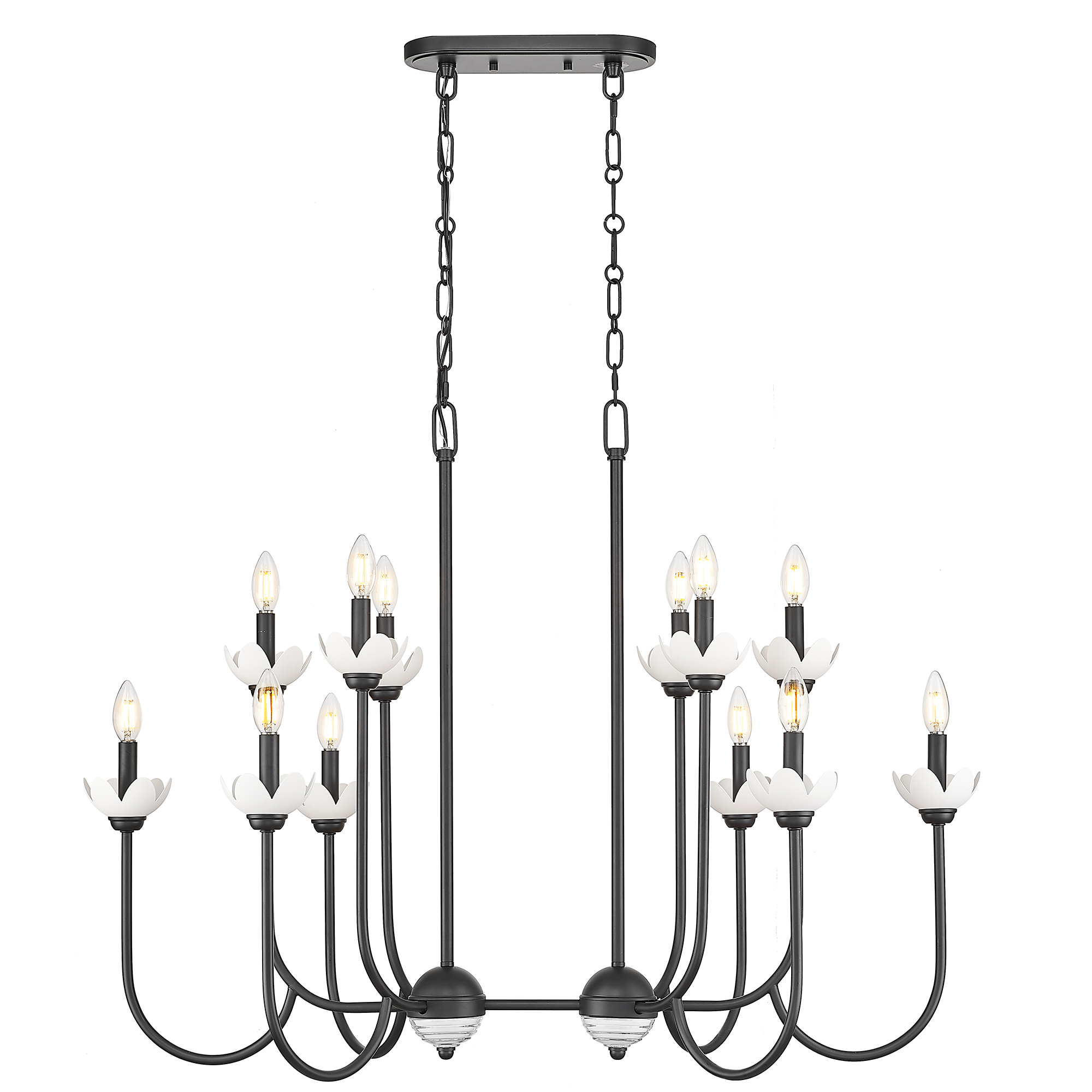 Beautiful in any setting, the captivating Allistair Linear Chandelier features long arms and charming flower petal caps. Perfect for a dining room or kitchen.