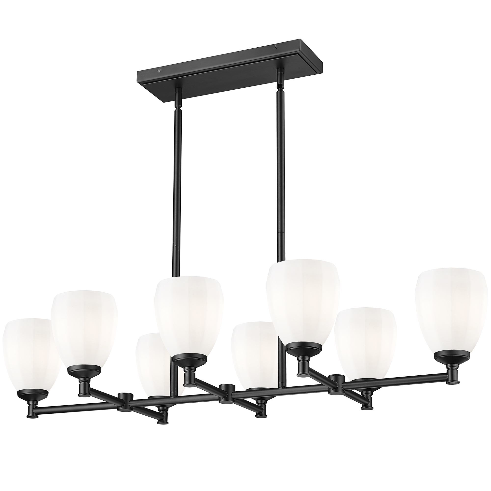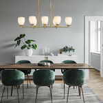 The modern Oren Linear Chandelier is a sleek way to add ample task lighting. Dome shades feature matte opal glass with soft light diffusion, while a clean finish provides a visual contrast. Perfect over an island or dining table.