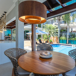 The Cylindrical Ring Drum Pendant blends clean lines with a touch of outdoor charm, perfect for elevating your interior space. The dual natural veneer shades cast soft, warm light and gentle shadows throughout your room.