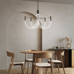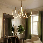 The Paradoxe Chandelier is a modern reinterpretation of the classic chandelier with a unique lighting inversion. Instead of branching arms supporting individual light sockets as in a traditional chandelier, Paradoxe's curved arms are illuminated from within by an LED light source. Each arm is capped with a brass cylinder, which recalls the look of candlesticks. Phase cut dimmable.