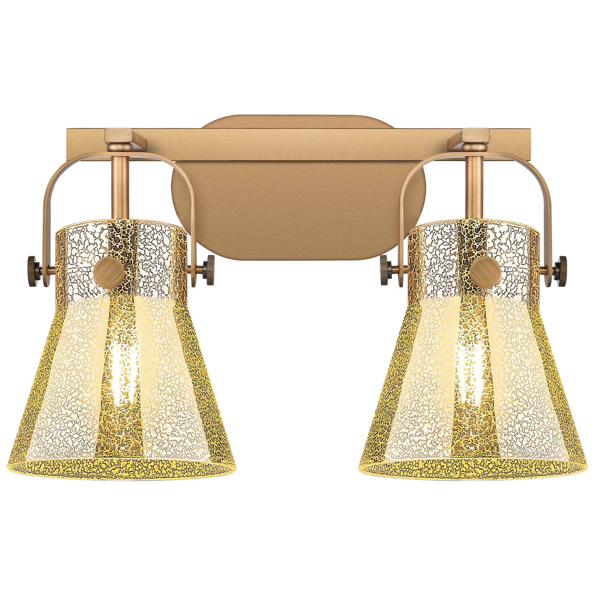 The Pilaster II Cone Bathroom Vanity Light brings an elegant twist to your interior space. The smooth arms hold architecturally arched frames, each with a hand blown cone shaped glass shade that cast warm shadows of light across your room. Mau be mounted with the glass up or down.