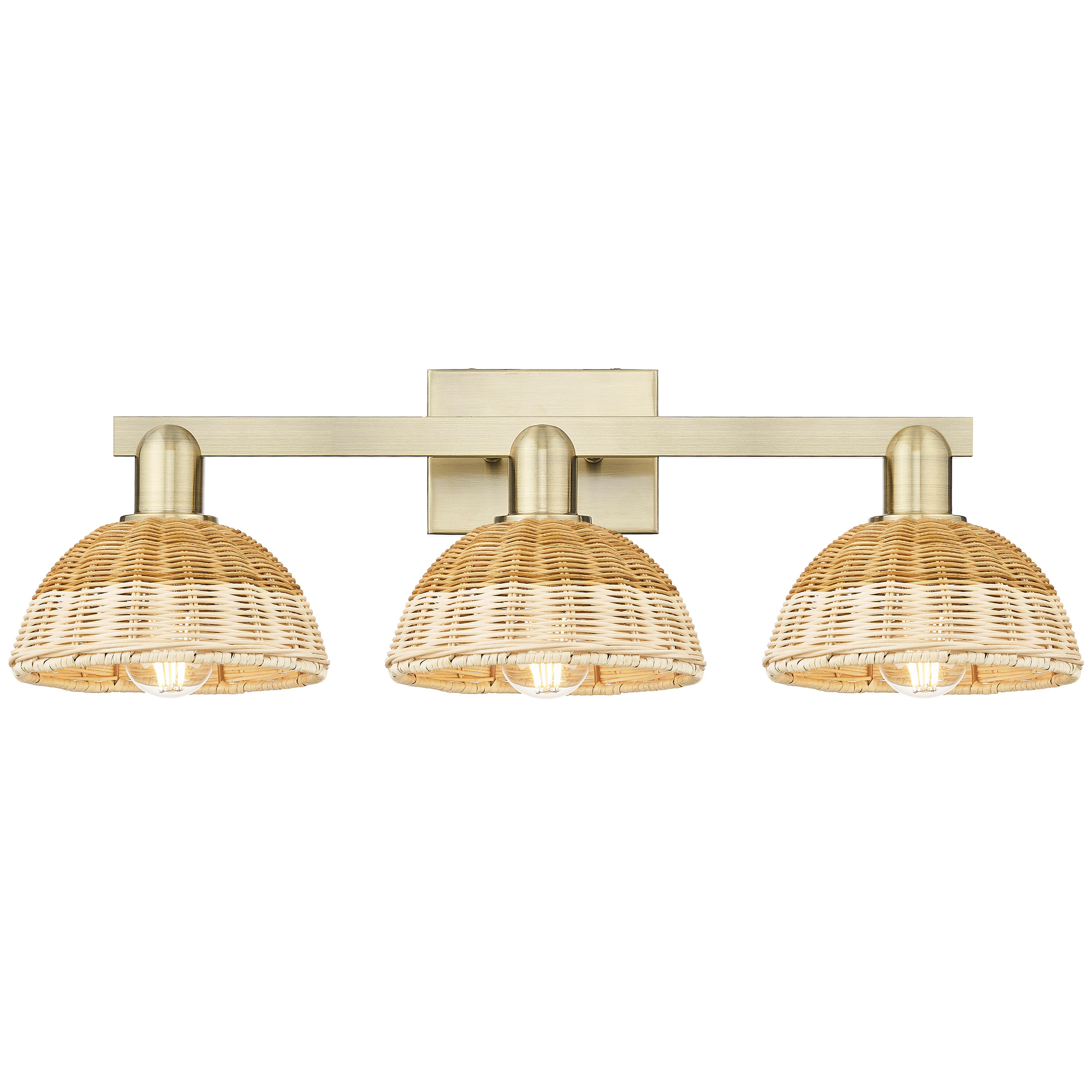 The Natural Ballston Dome 716 Bathroom Vanity Light brings a rustic country cottage look to your interior space. The sleek frame holds woven fiber shades, in dual tomes, that allows a captivating play of light and shadow throughout your room. May be mounted with the shades facing up or down.