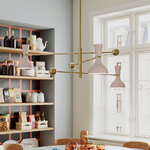 The Clare Arm Pendant brings a timeless midcentury modern look to your interior space. Each elegant dome shade is balanced by a ball counterweight, and complemented with a solid matching or contrasting top color to give your room a dramatic statement piece. Move the shades into your desired position by rotating at the joint.