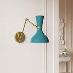 The Clare Adjustable Hardwired / Plug-in Wall Light brings a timeless midcentury modern look to your interior space. The elegant dome shade is complemented with a solid matching or contrasting top color to give your room a dramatic statement piece. With dual, adjustable arms, warn shadows of light are cast right where you need it. Full Range dimmer switch is located on the backplate. Depth adjusts from 15.5 inches to 28 inches.