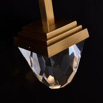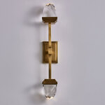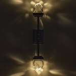 Drawing inspiration from jewelry design, the Taglio Wall Sconce Collection showcases a robust brass base supporting two large, intricately faceted solid crystal blocks. The clean, straight lines accentuate the distinctive, random cuts of the crystal. The integrated LED lighting is compatible with a TRIAC dimmer (not included) for adjustable brightness.