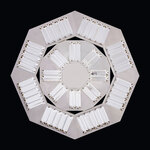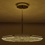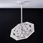 The Tempo Pendant evokes the intricate design of a quilting pattern, showcasing interlocking rotating octagons. This sleek Pendant Collection is equipped with CCT LED technology, a tilting mechanism for adjusting the fixtures angle, and compatibility with an ELV dimmer (sold separately). Its refined geometric aesthetic enhances any contemporary setting. The fixture arrives fully assembled and is installation-ready.