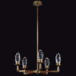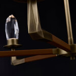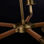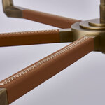 The Misto Chandelier seamlessly blends three exquisite materials to form intricate, architecturally inspired decorative lighting. Featuring premium brass, crystal, and genuine leather, this collection transcends ordinary lighting fixtures. The leather accents introduce a touch of softness, harmonizing beautifully with other leather furnishings in the room. This distinctive piece is sure to spark conversations in any setting.