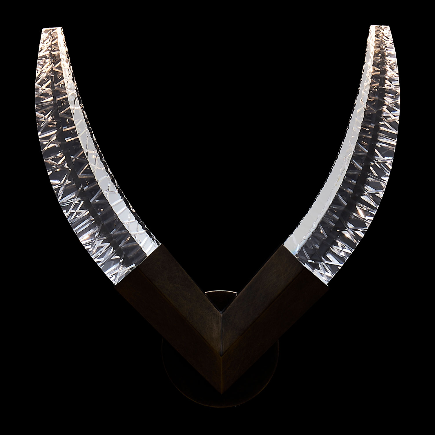 Drawing inspiration from antlers, the Corna Wall Sconce presents a sleek and artistic take on the traditional chandelier, incorporating distinctive crystals and advanced LED technology. The design boasts a hexagonal stainless steel framework, each piece uniquely accented with crystal details. This refined fixture would seamlessly complement a contemporary lodge aesthetic. Available in an elegant bronze finish.