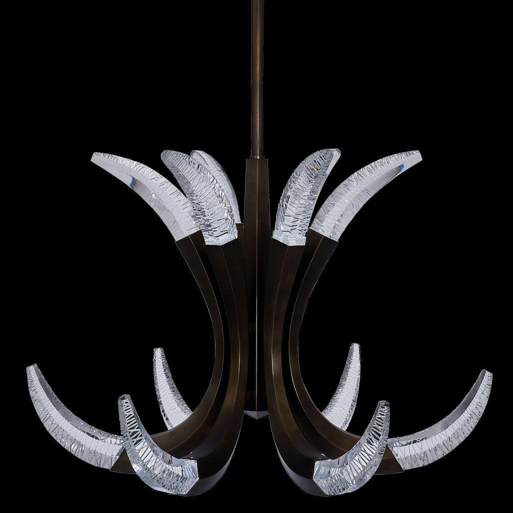 Drawing inspiration from antlers, the Corna Chandelier presents a sleek and artistic take on the traditional chandelier, incorporating distinctive crystals and advanced LED technology. The design boasts a hexagonal stainless steel framework, each piece uniquely accented with crystal details. This refined fixture would seamlessly complement a contemporary lodge aesthetic. Available in an elegant Bronze finish. Triac dimming.