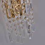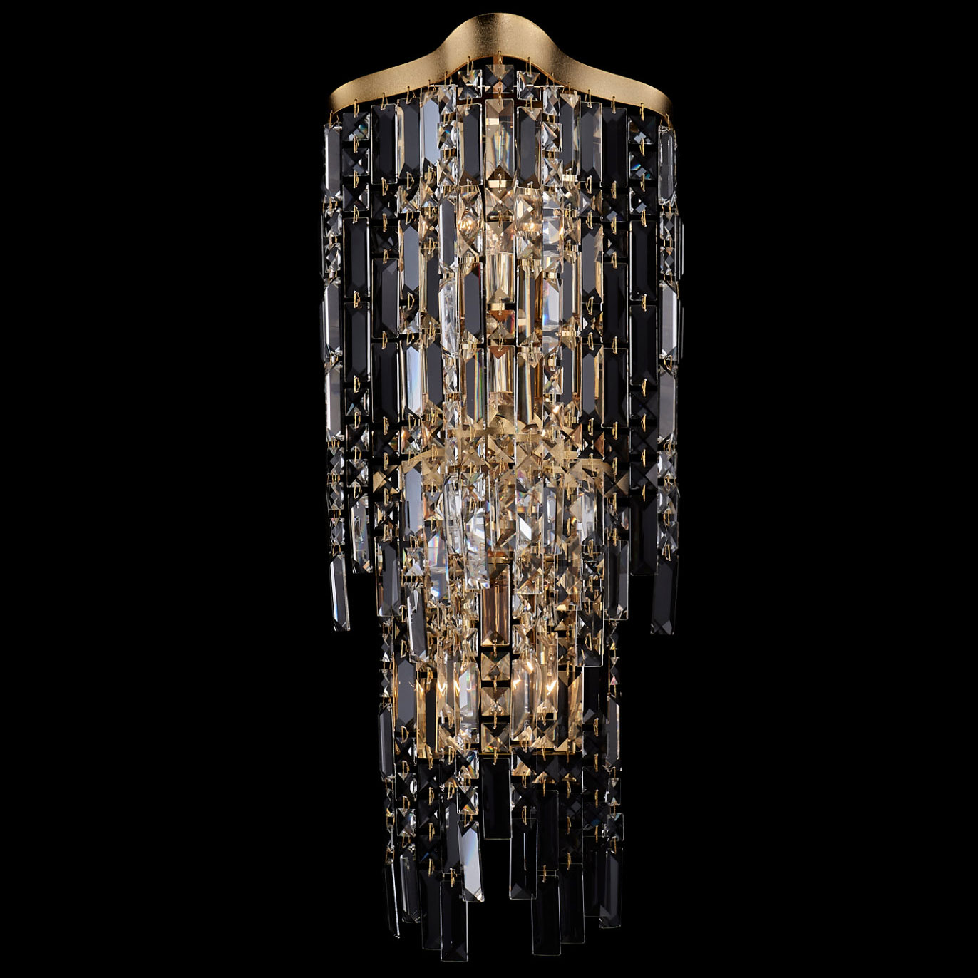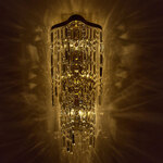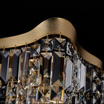 The Cadere Wall Sconce captivates the eye and sparks intrigue with its mesmerizing visual texture. Drawing inspiration from cascading waterfalls, this collection showcases vertical Firenze Crystals suspended from an undulating steel frame. Elegantly finished in gold, it is both stunning and thought-provoking.